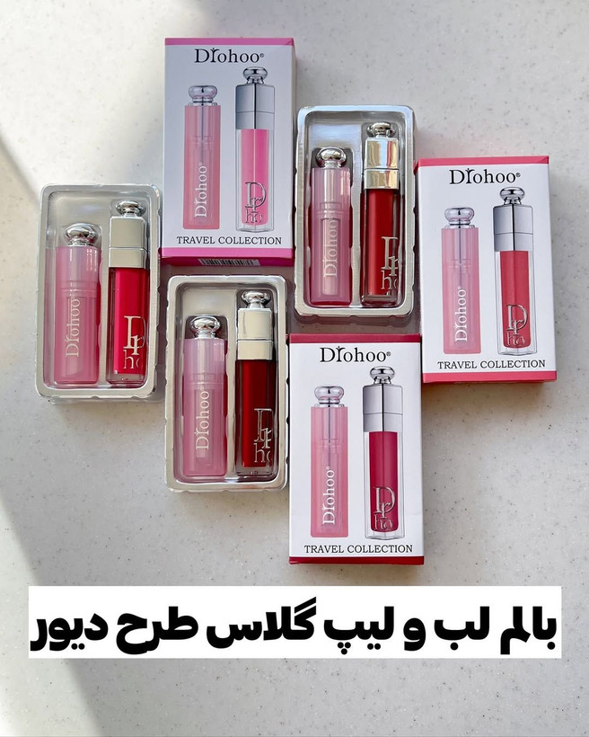 #پک دوتایی بالم لب و لیپ گلاس طرح دیور💕 Drohoo💕